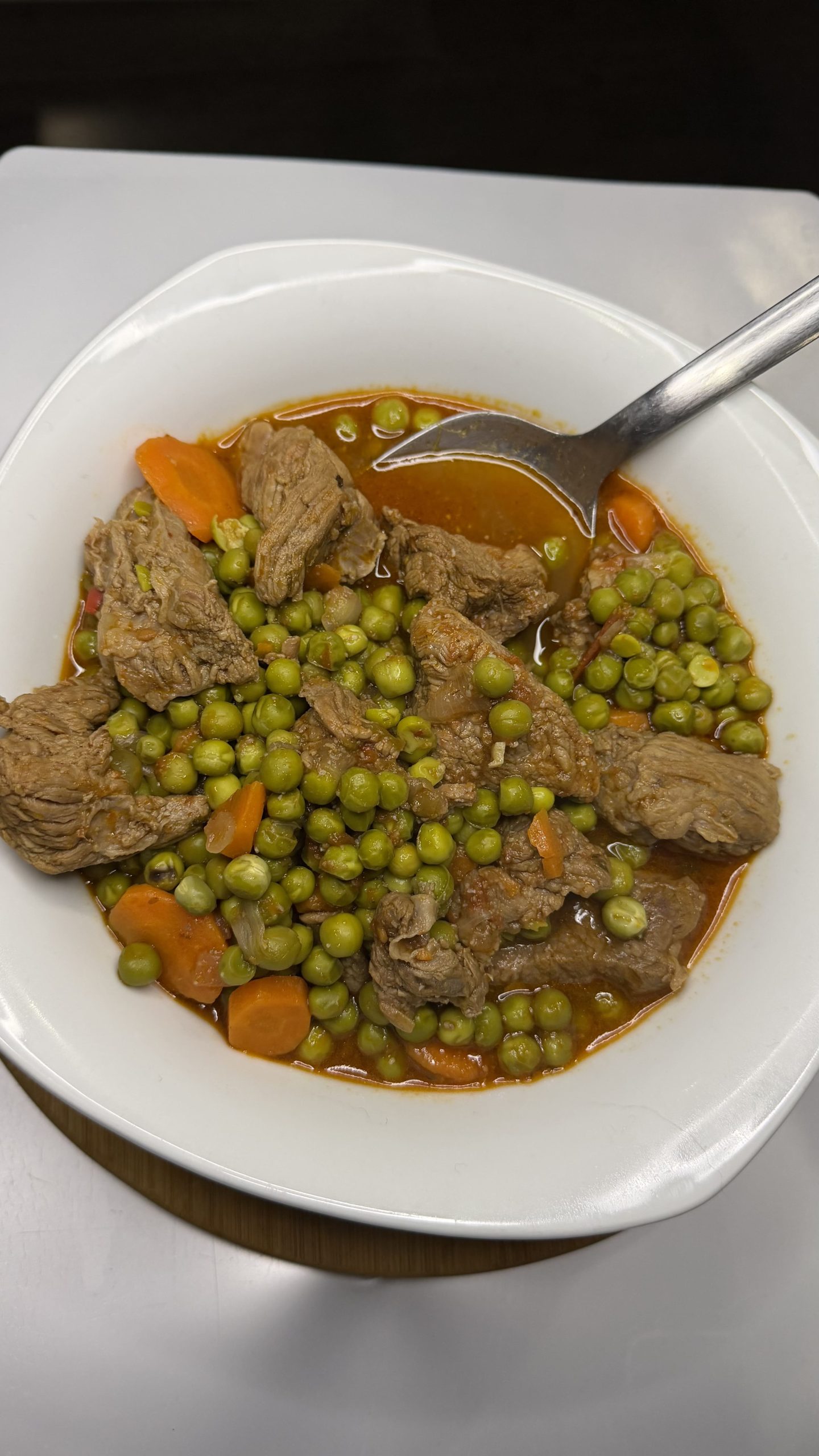 Tender beef slow-simmered with sweet peas in a rich, savory gravy.