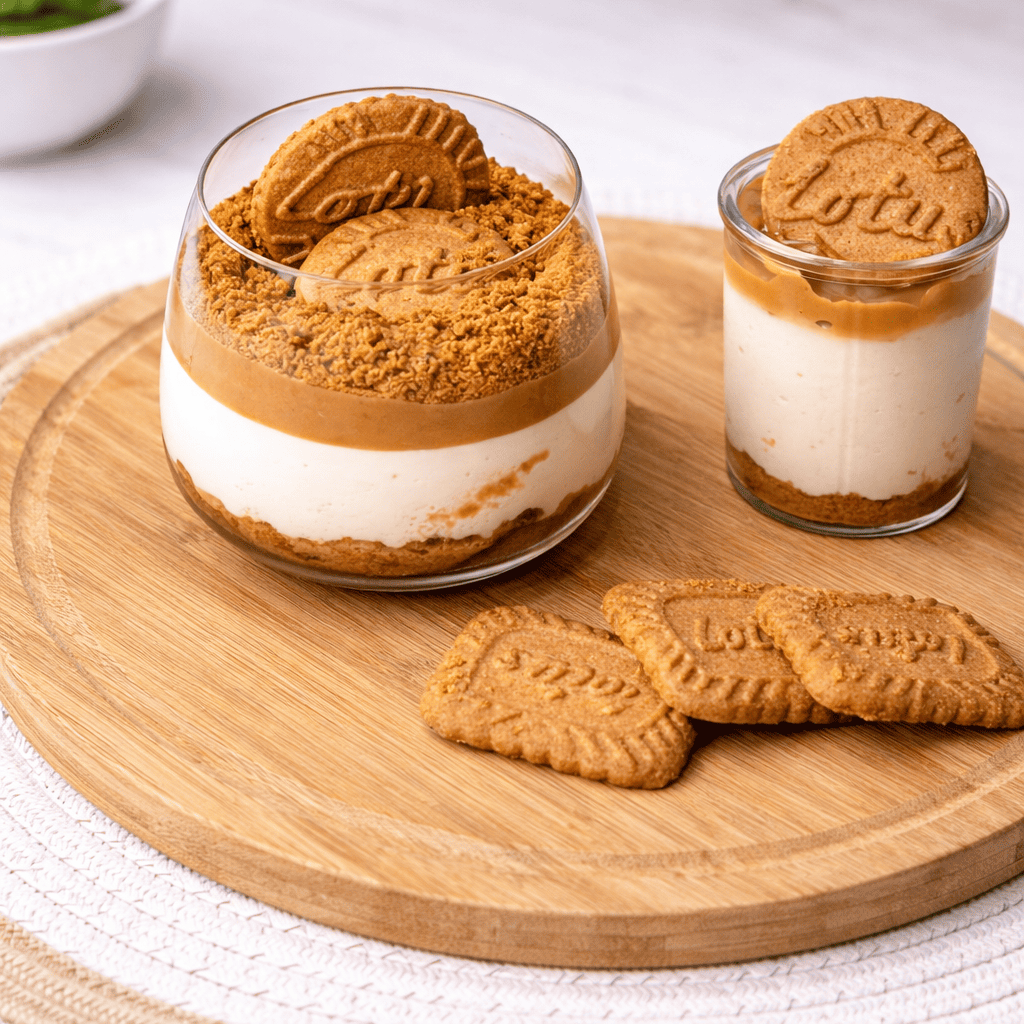 These no-bake Lotus Biscoff cheesecake cups are layered with a crunchy cookie base and a creamy, spiced cookie-butter filling, finished with a drizzle of Biscoff goodness — perfect for spring entertaining.