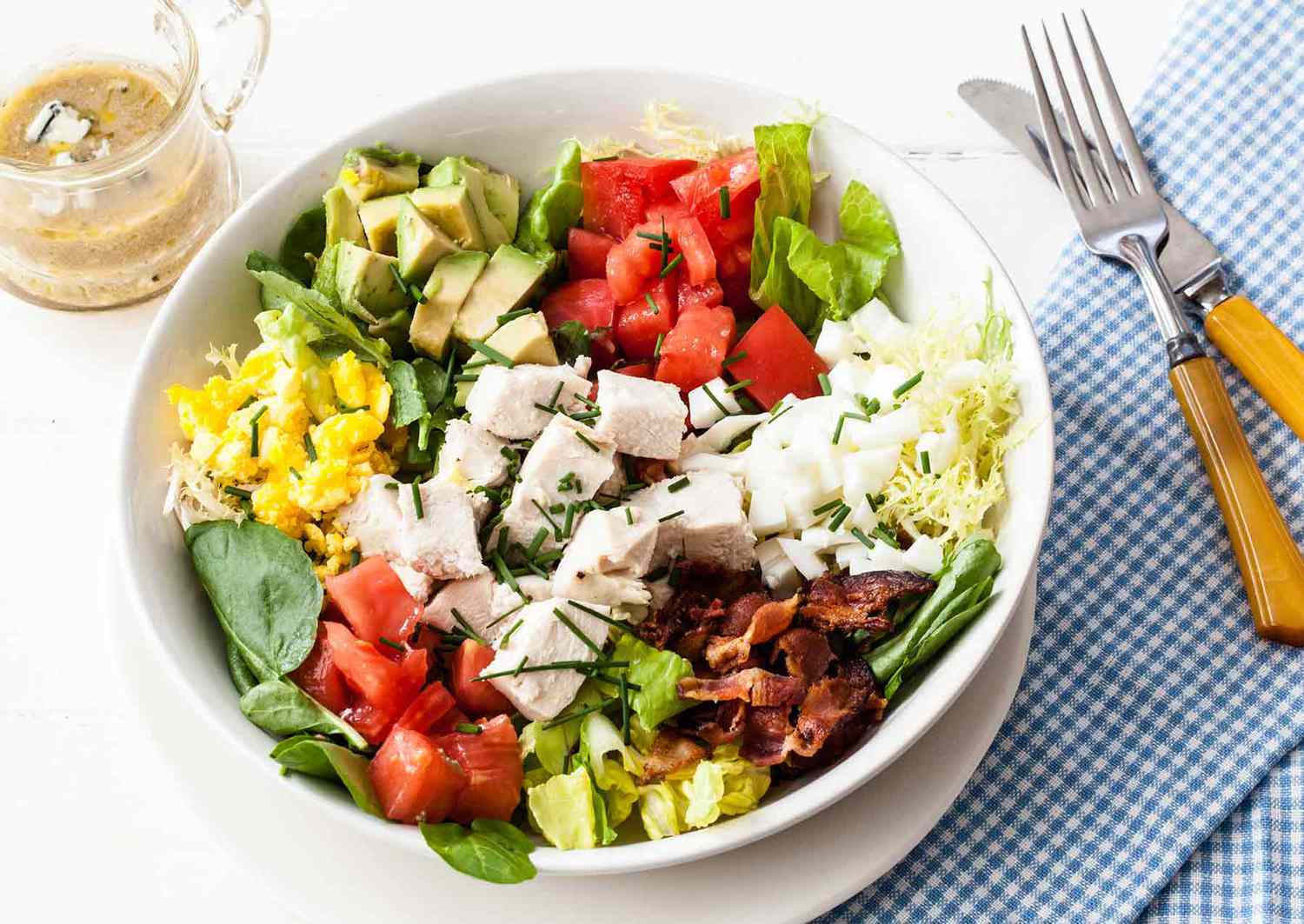 A classic Cobb salad delivers big flavor with chicken, bacon, egg, avocado, and tomato over crisp greens. It’s hearty enough for dinner while still feeling fresh, making it a reliable springtime “meal salad” when you need something satisfying.