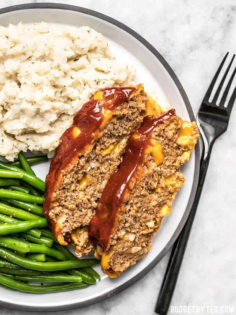 This recipe leans hard into comfort food, with cheddar throughout and a tangy tomato-mustard sauce on top. It’s the kind of meatloaf that slices beautifully and feels just as good the next day, especially tucked into a sandwich or reheated with potatoes.