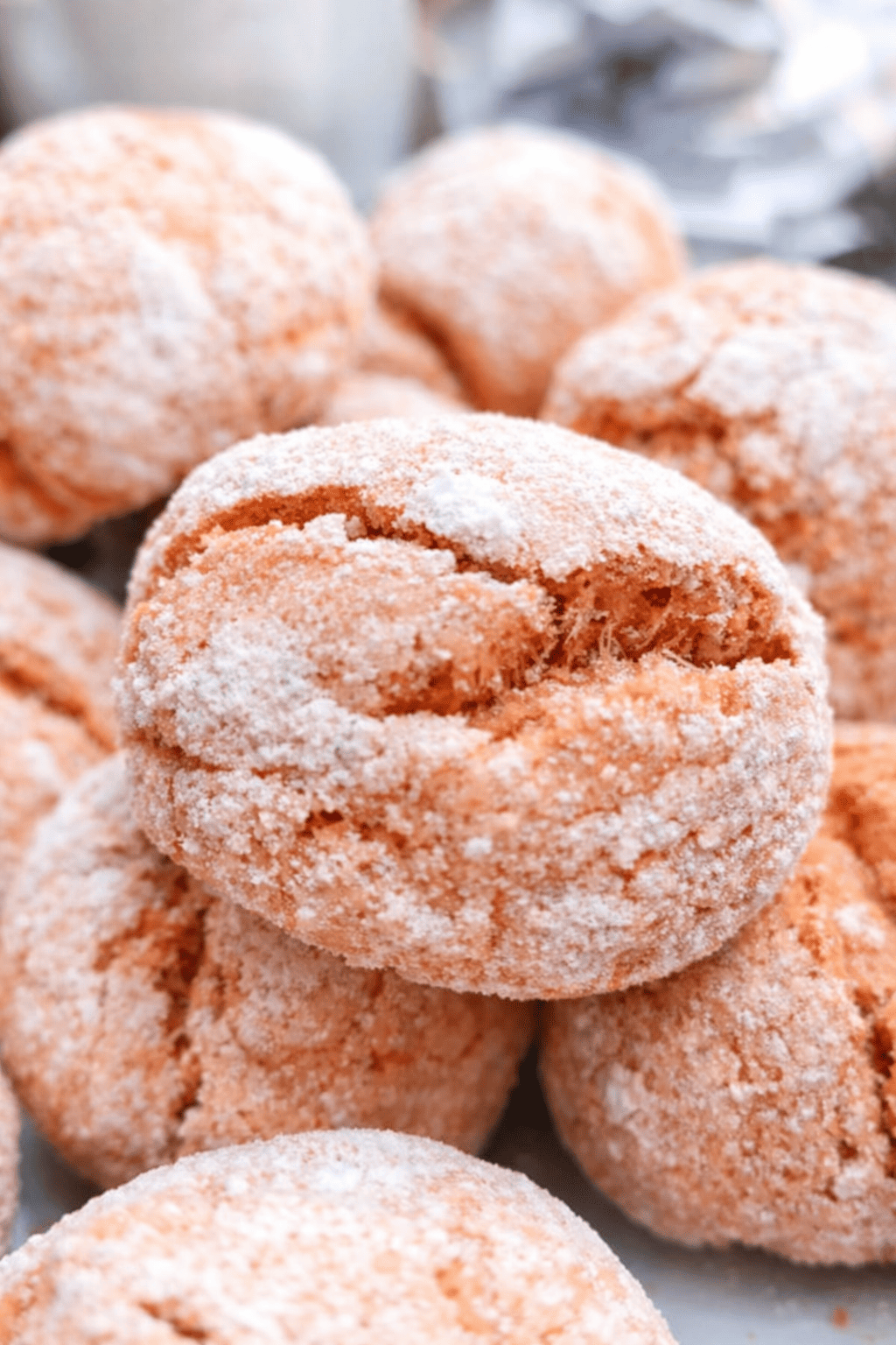 1. Snowy Pink Crinkle Cookies for the Holidays by Mary’s delights