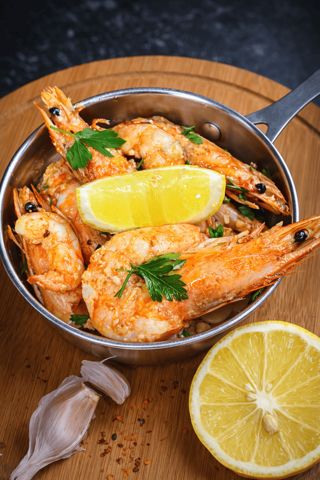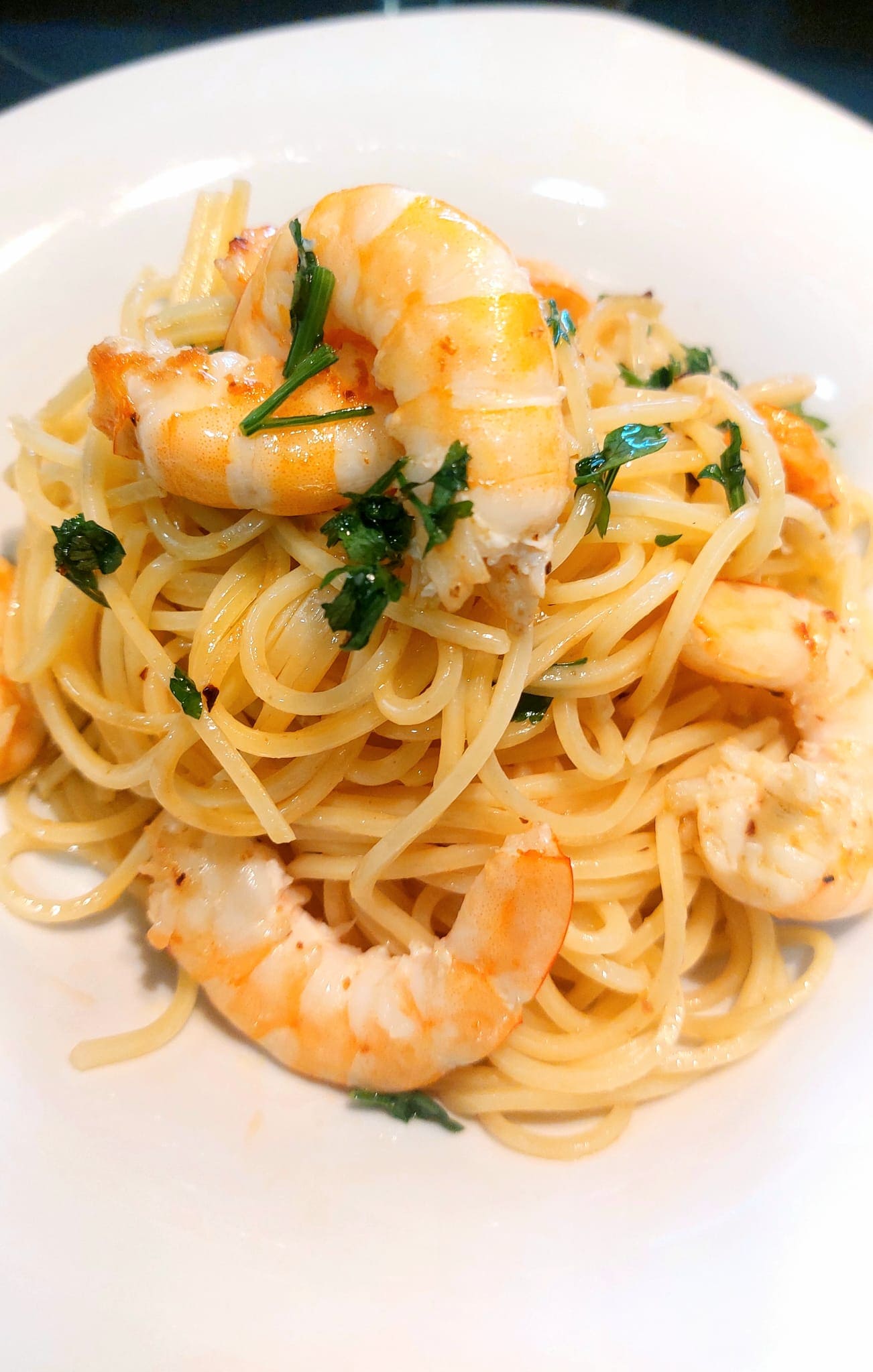 A super quick and flavourful spring dinner idea — succulent shrimp sautéed in garlic, olive oil, chili, and lemon for a bold, zesty kick.