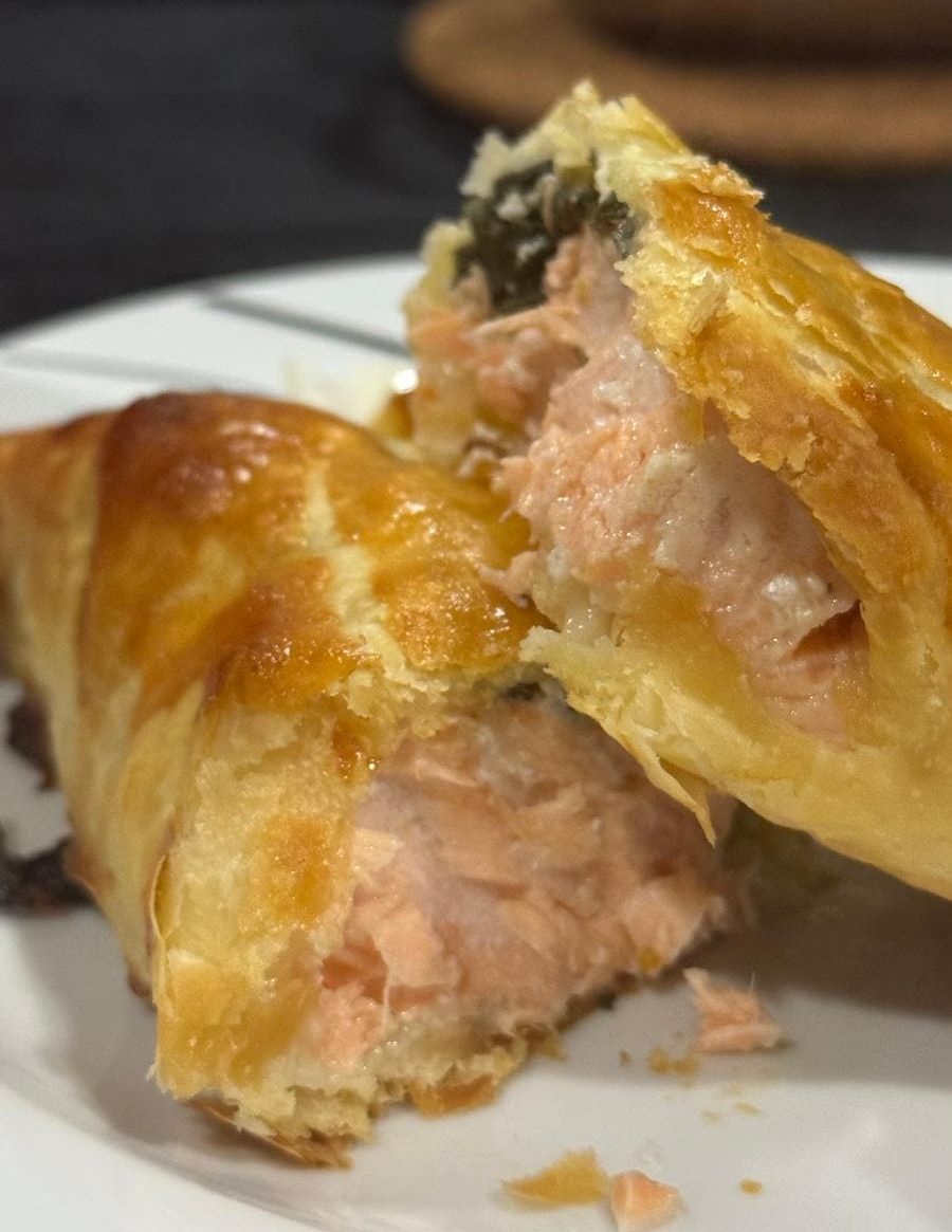 12) Golden Puff Pastry Salmon Pie with Spinach & Ricotta