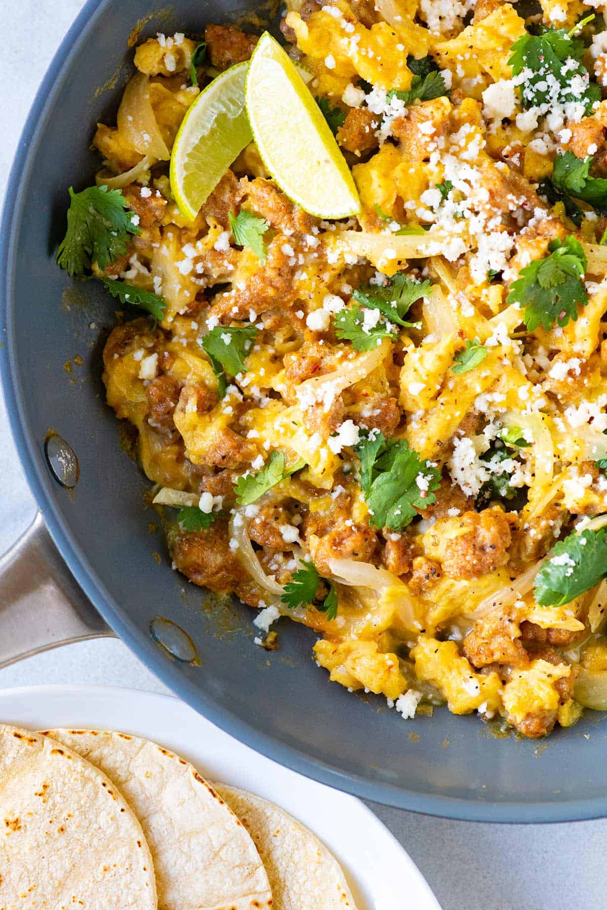 This is a family-favorite meal. Chorizo and eggs come together within 30 minutes. The best part is that you can make it either for breakfast or dinner.