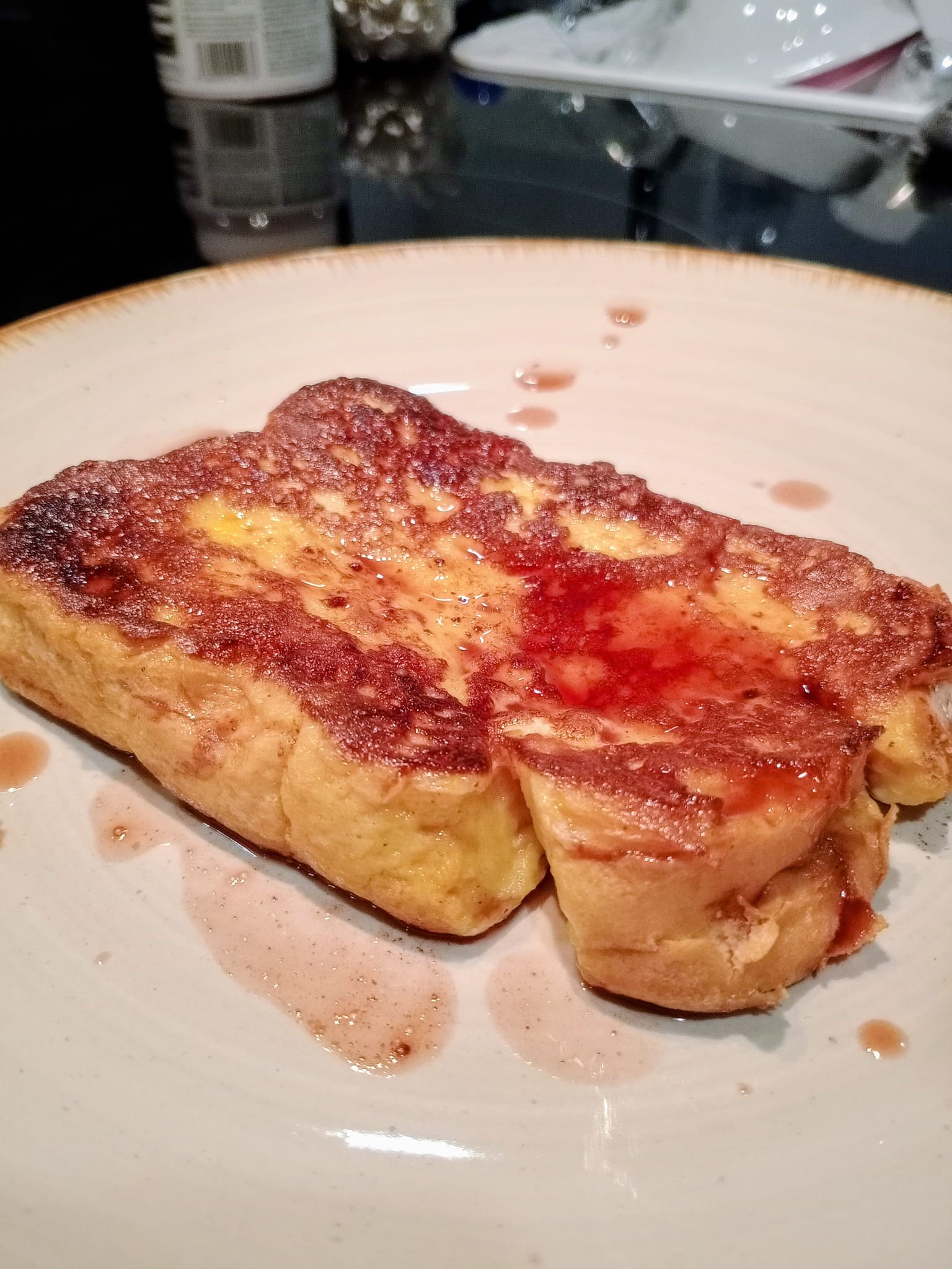 Soft brioche French toast soaked in vanilla custard, golden-fried and finished with a warm port wine cinnamon syrup.