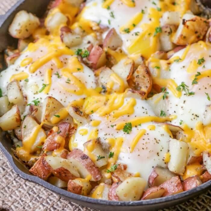 Perfect for a quick whip-up on busy mornings, this delicious meal is a great choice for the winter season. Eggs and potatoes are made in one skillet and finished in the oven for a classic, comforting dish.