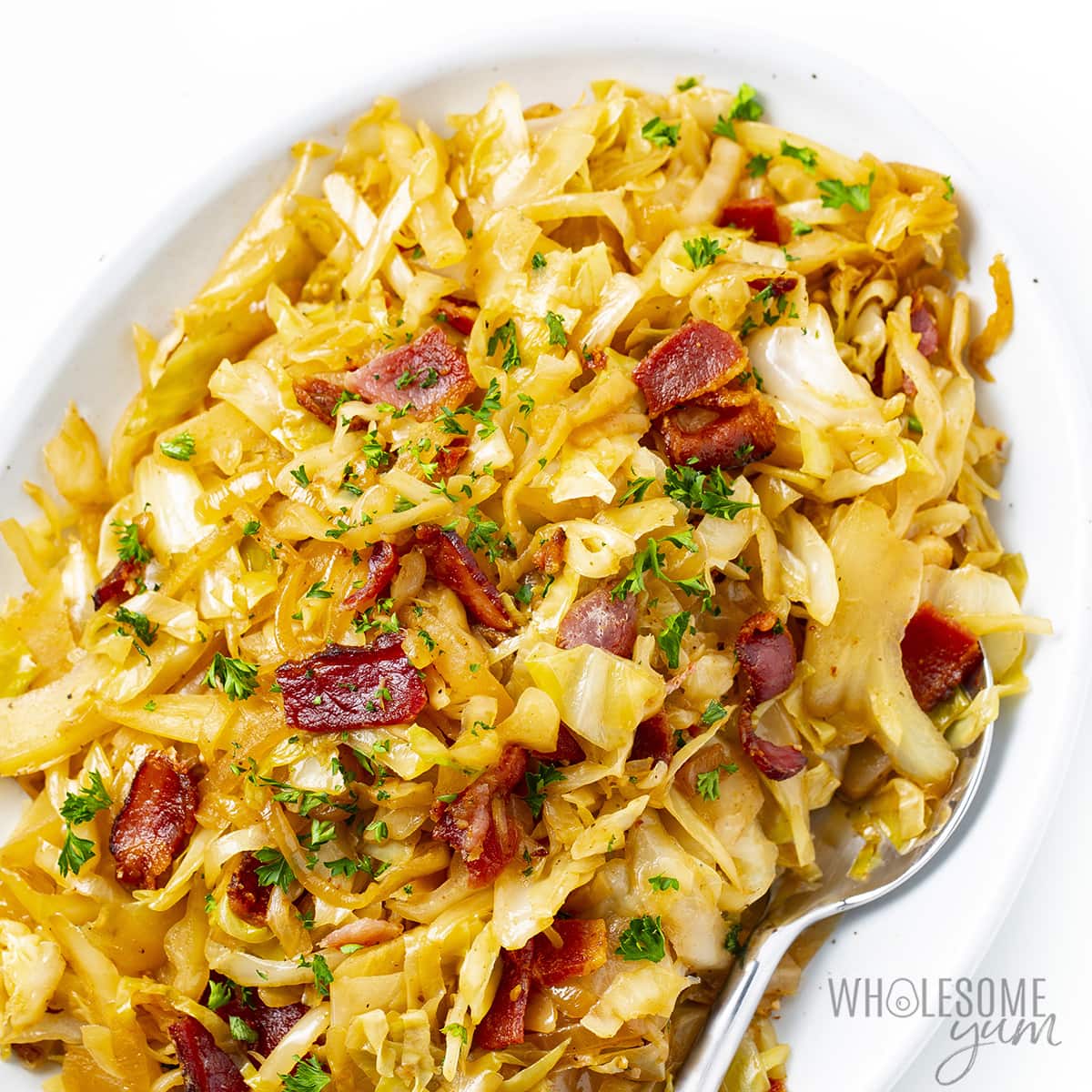 11. Fried Cabbage (With Bacon!) by Wholesome Yum
