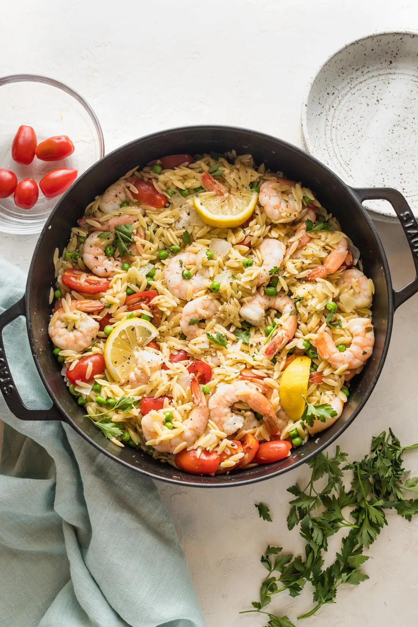 6. One Pot Lemon Shrimp Orzo by Nourish and Fete