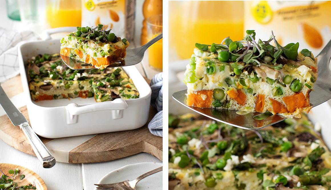 This casserole is packed with spring vegetables like sweet potatoes, asparagus, and peas, so it looks colorful and seasonal instead of heavy or plain. It keeps the article visually appealing, but moves the list closer to real brunch food instead of mostly sweet baking.