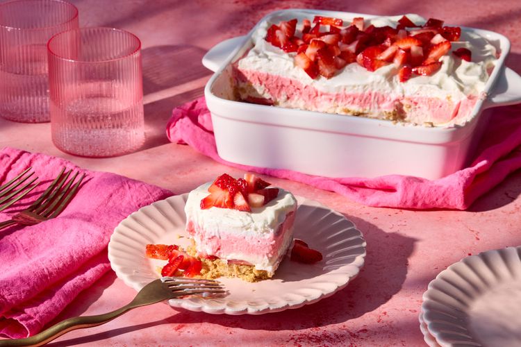 This Southern classic layers a buttery pretzel crust, creamy filling, and strawberry gelatin topping for a sweet-salty dessert everyone recognizes. It looks especially impressive in a glass dish, where the pink top layer really gets a chance to shine.