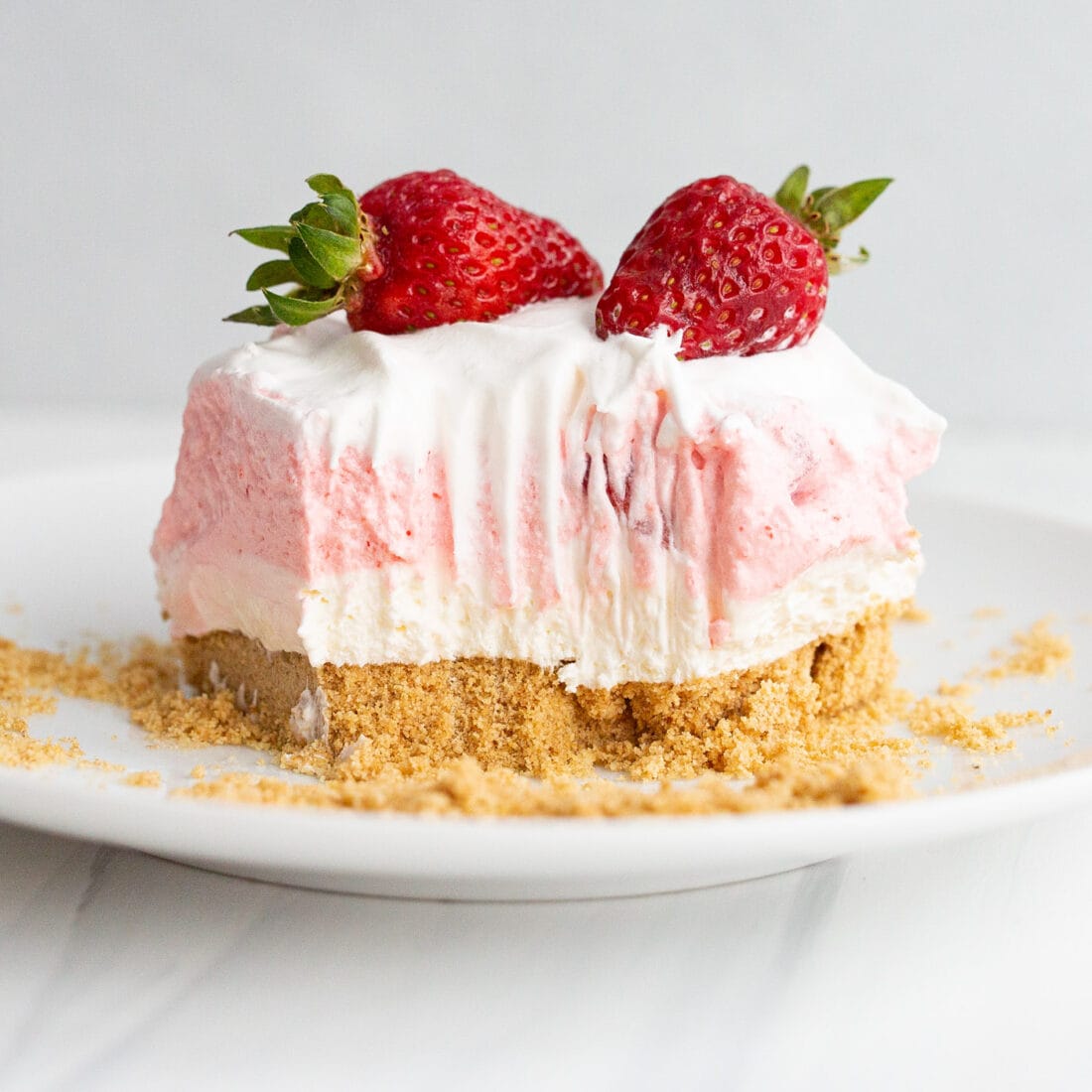 This no-bake dessert layers graham cracker crust, cheesecake-style cream, strawberries, strawberry fluff, and whipped cream. The result is a soft pink, crowd-friendly dessert that looks full and luscious in every slice, especially for spring and summer menus.