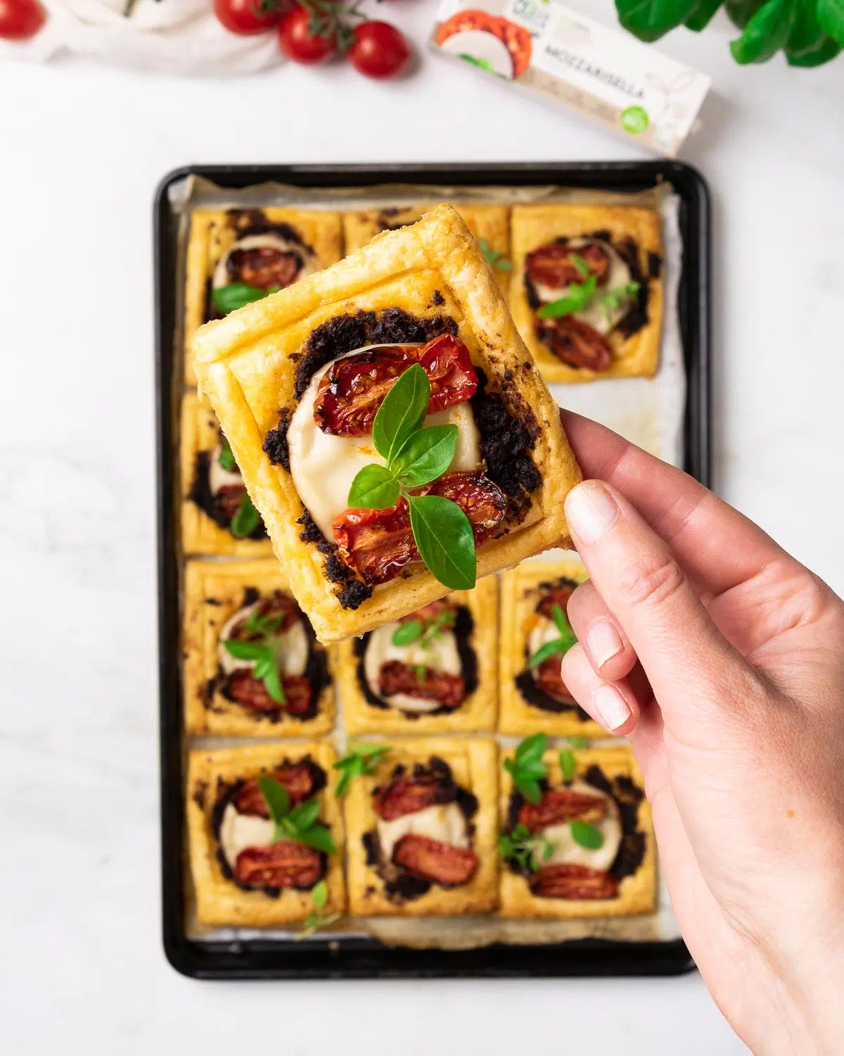 20. Puff Pastry Tomato Tartlets (with Mozzarisella) by The Vegan Larder