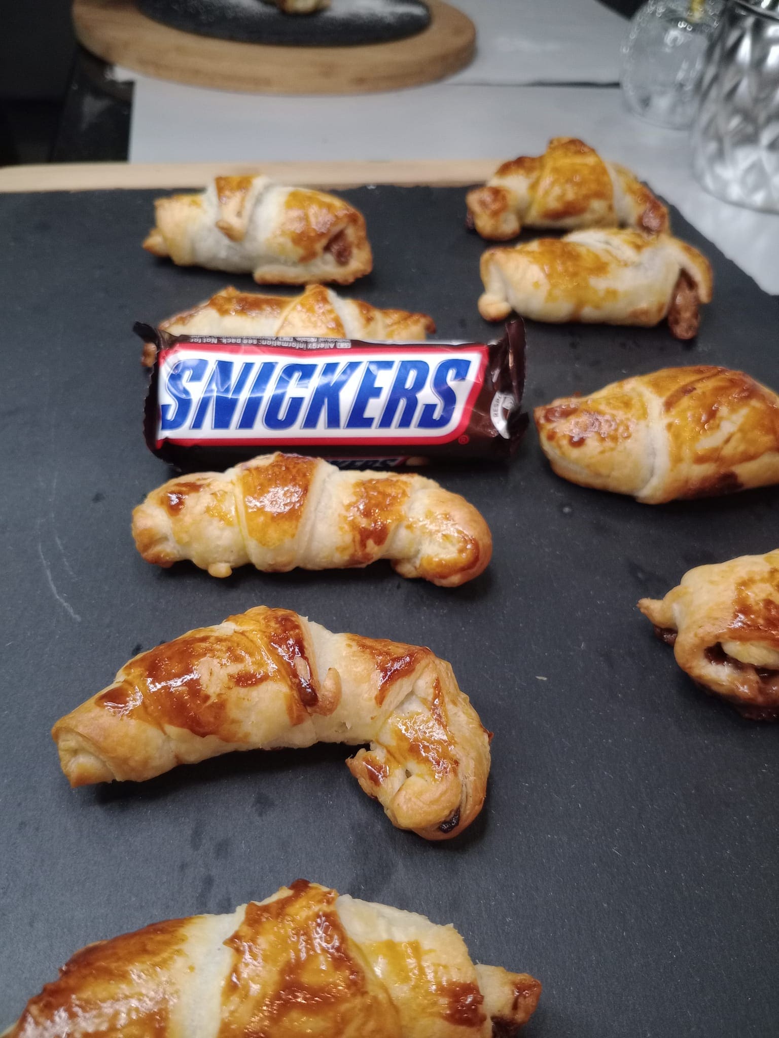 3. Puff Pastry Croissants Stuffed with Snickers by Mary’s Delights