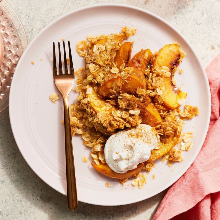 This crisp sounds like a strong go-to because it balances sweet peaches with cinnamon, oats, brown sugar, and butter. It’s simple, classic, and exactly the kind of dessert that tastes even better with a scoop of ice cream on top.