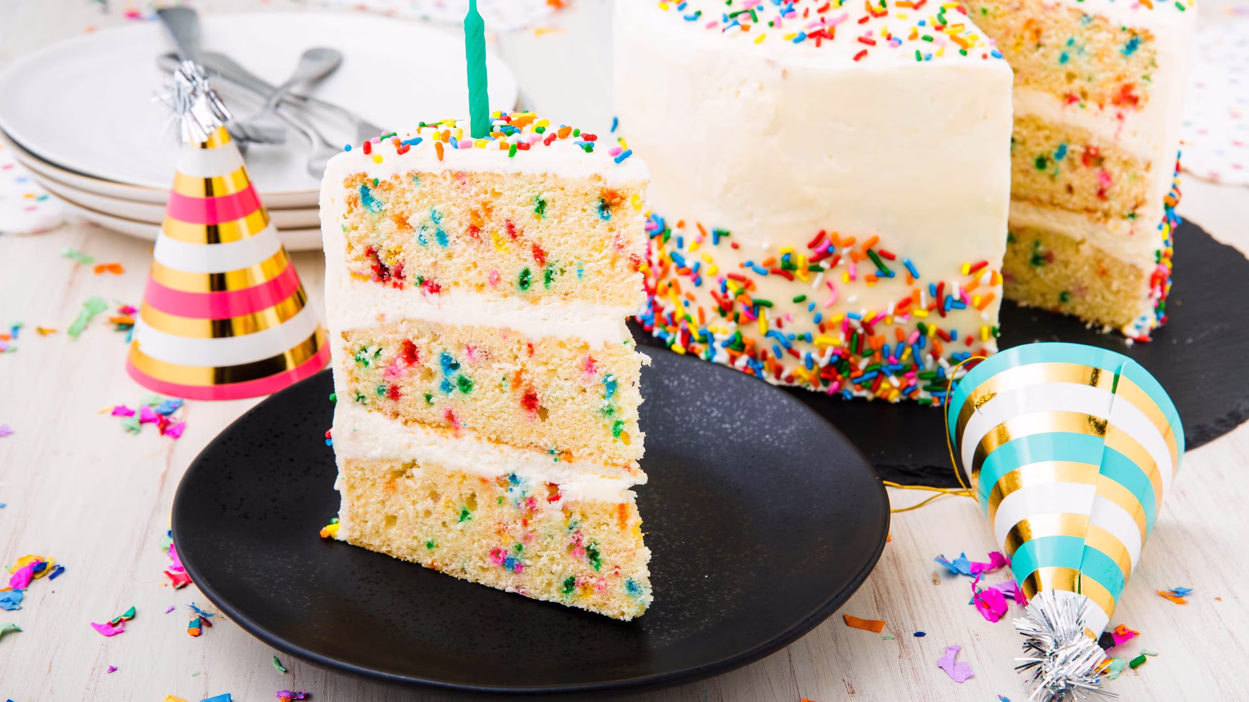 A sprinkle-filled celebration cake with soft vanilla layers and party energy built in. It’s designed to feel festive but still approachable, making it a great “default birthday cake” when you want something cheerful, colorful, and guaranteed to make people smile.
