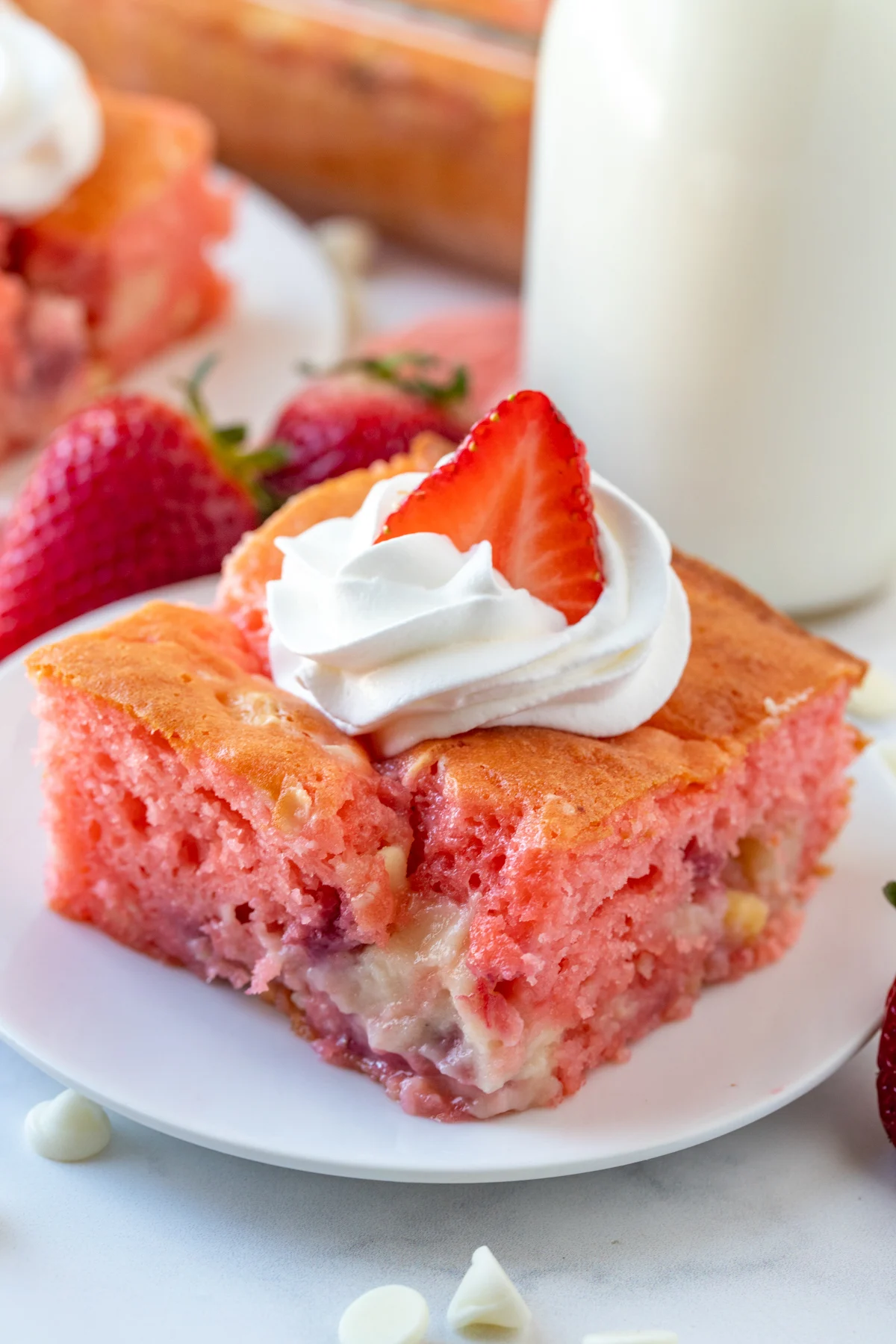 A nostalgic, crowd-pleasing sheet cake that’s extra moist thanks to the poke-and-pour method. Strawberry cake mix, gelatin, and toppings create layers of fruity flavor, and it’s easy to make ahead—perfect for BBQs, birthdays, and holidays.
