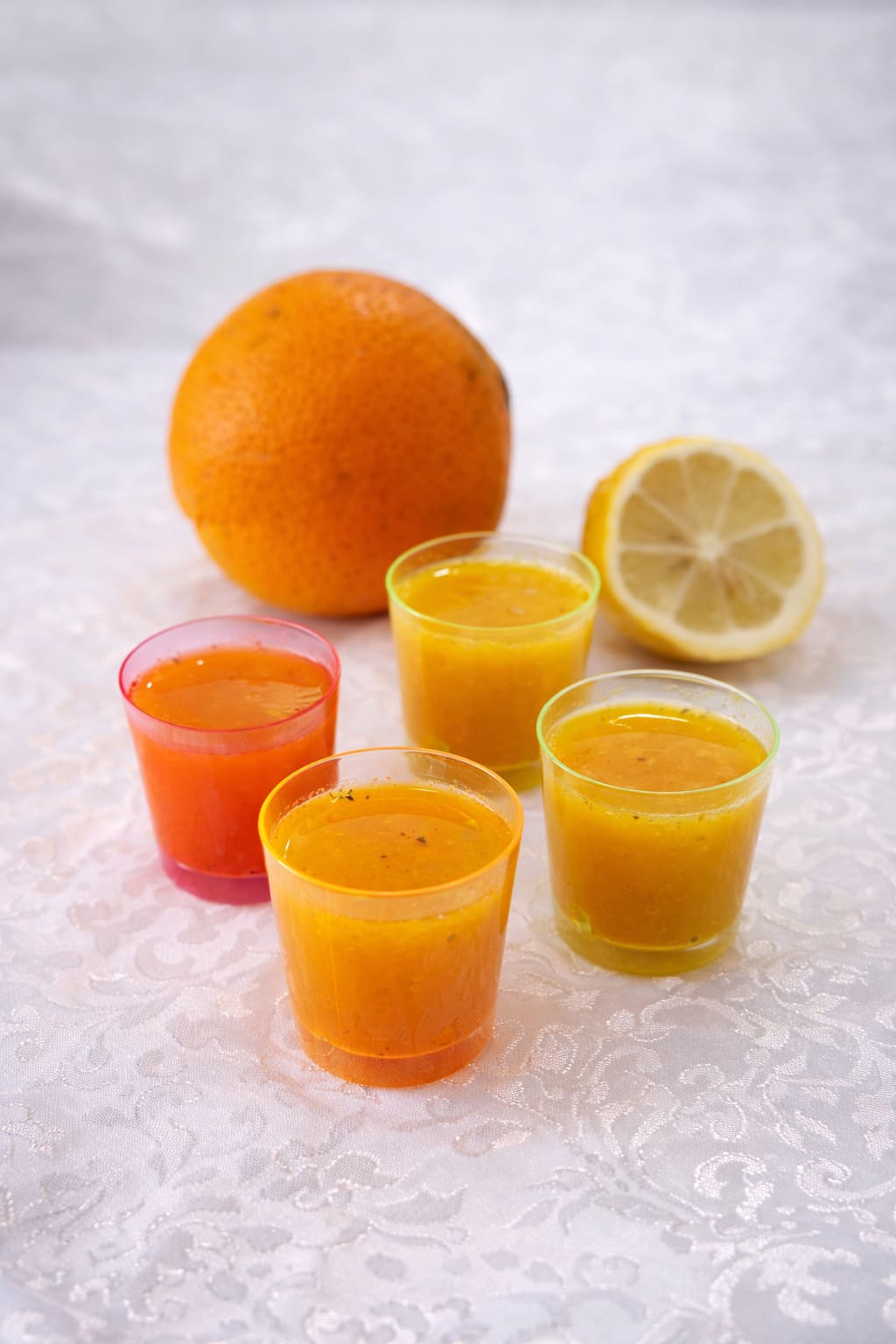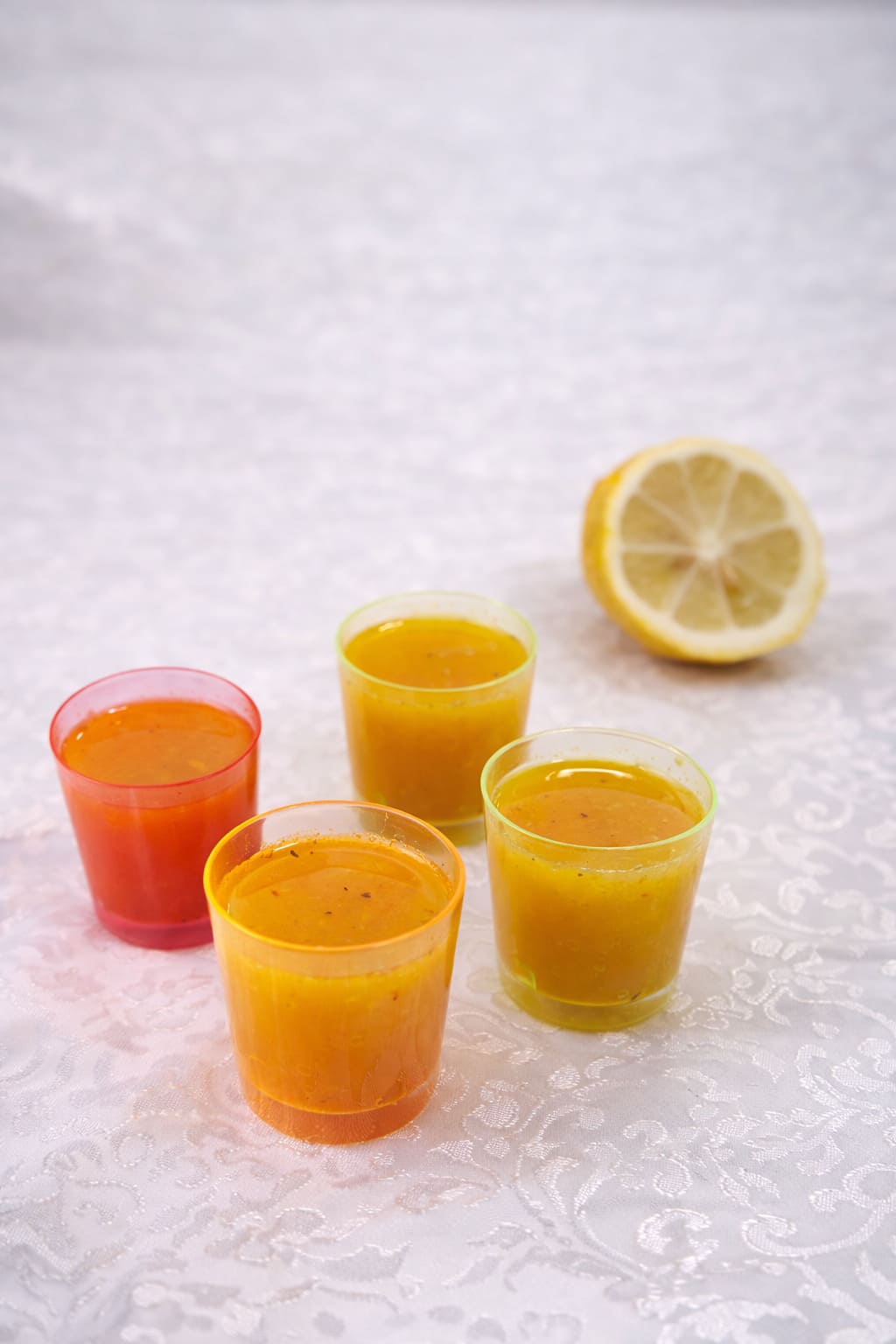 6) Divide the mixture into 4 small shot glasses and serve right away.