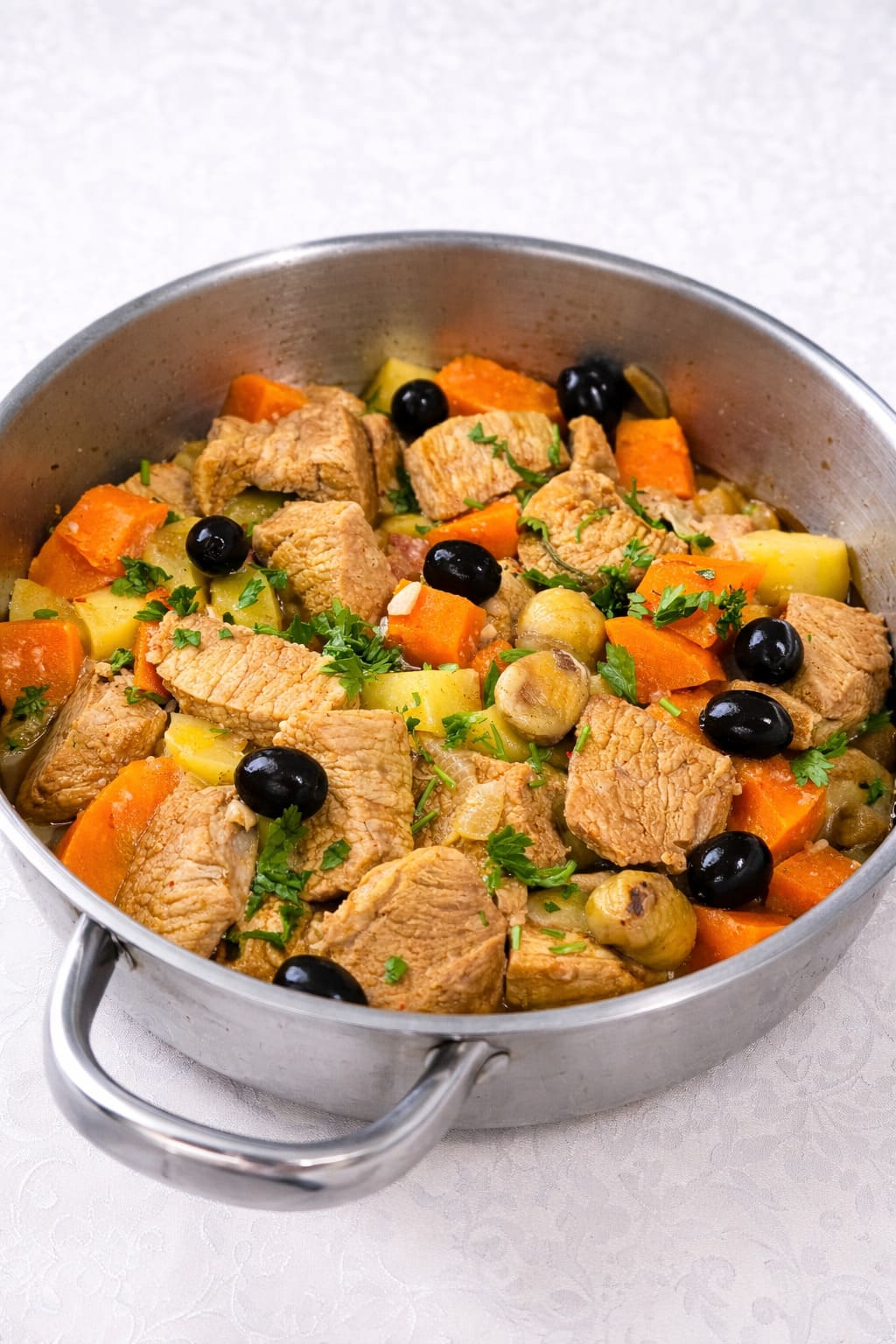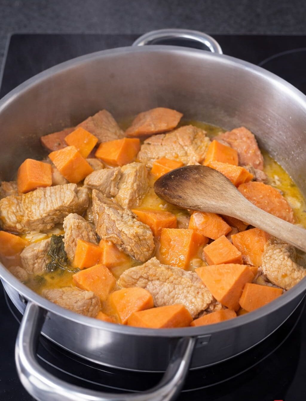 This dish brings together juicy marinated pork, sweet and savory potatoes, and chestnuts for that extra cozy touch.